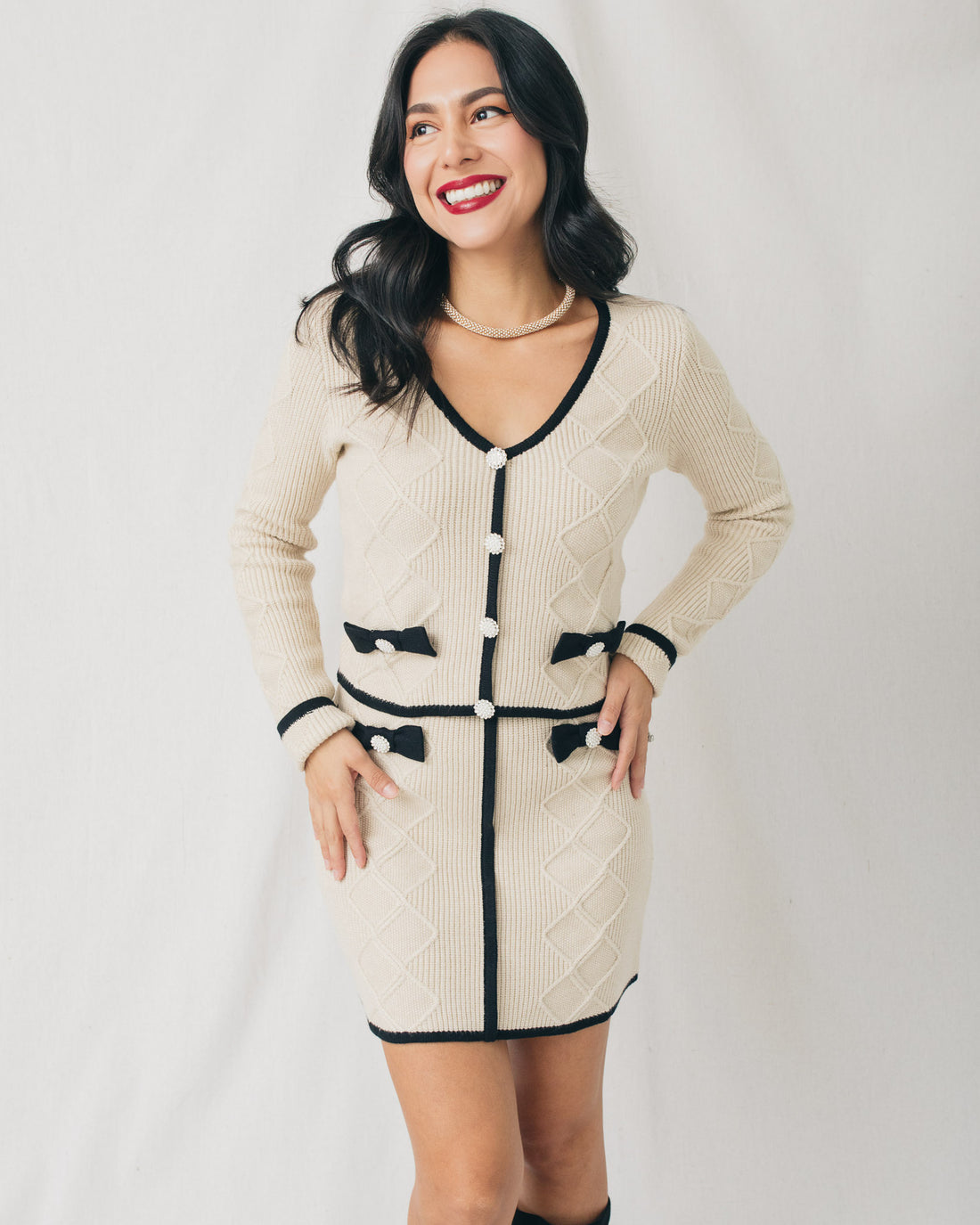All Glam Jewel Bow Detail Contrast Knit Sweater
