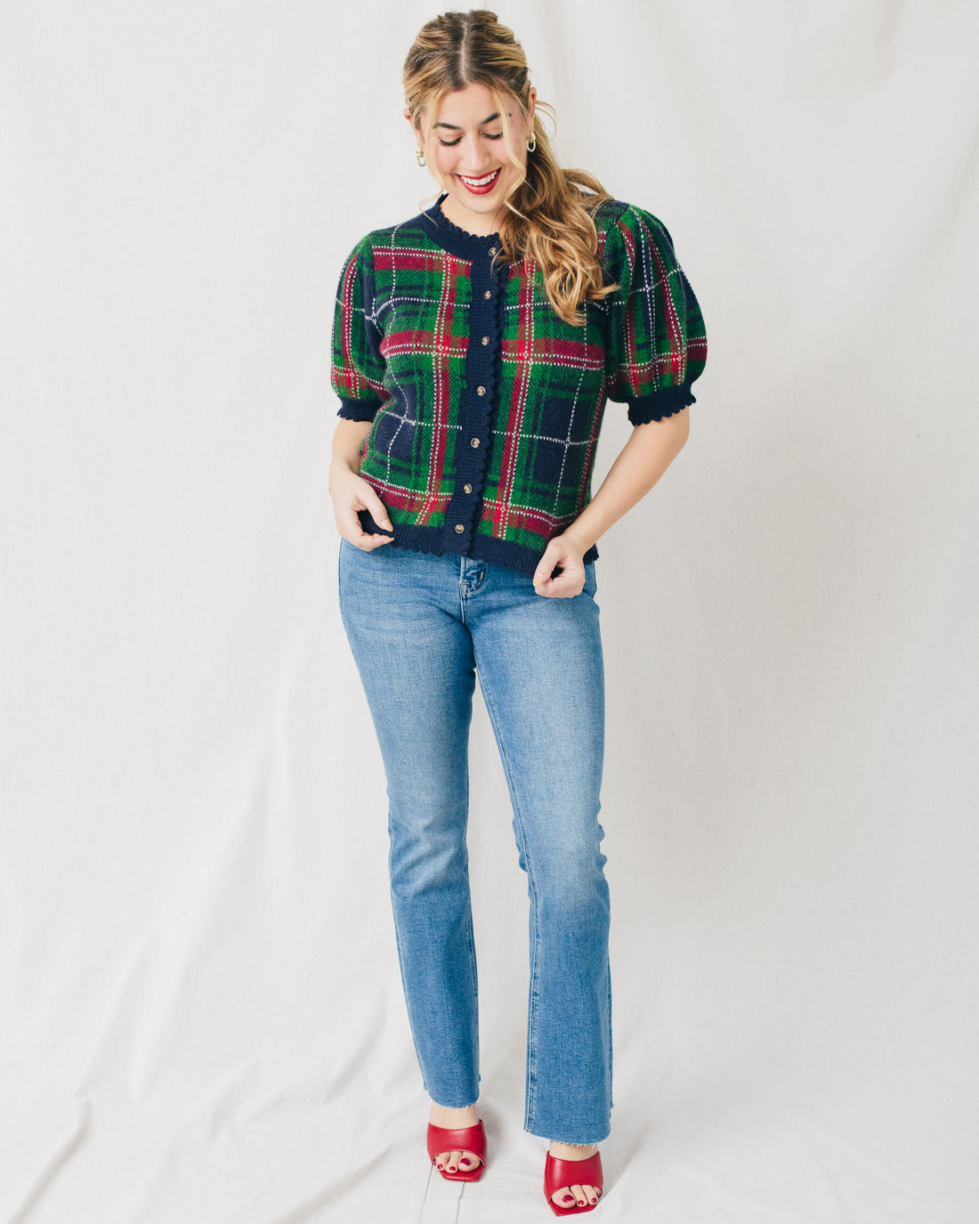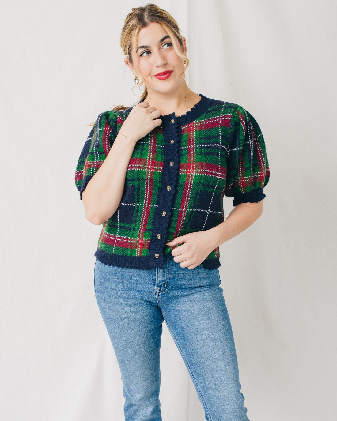 Helen Short Sleeve Plaid Sweater Cardigan
