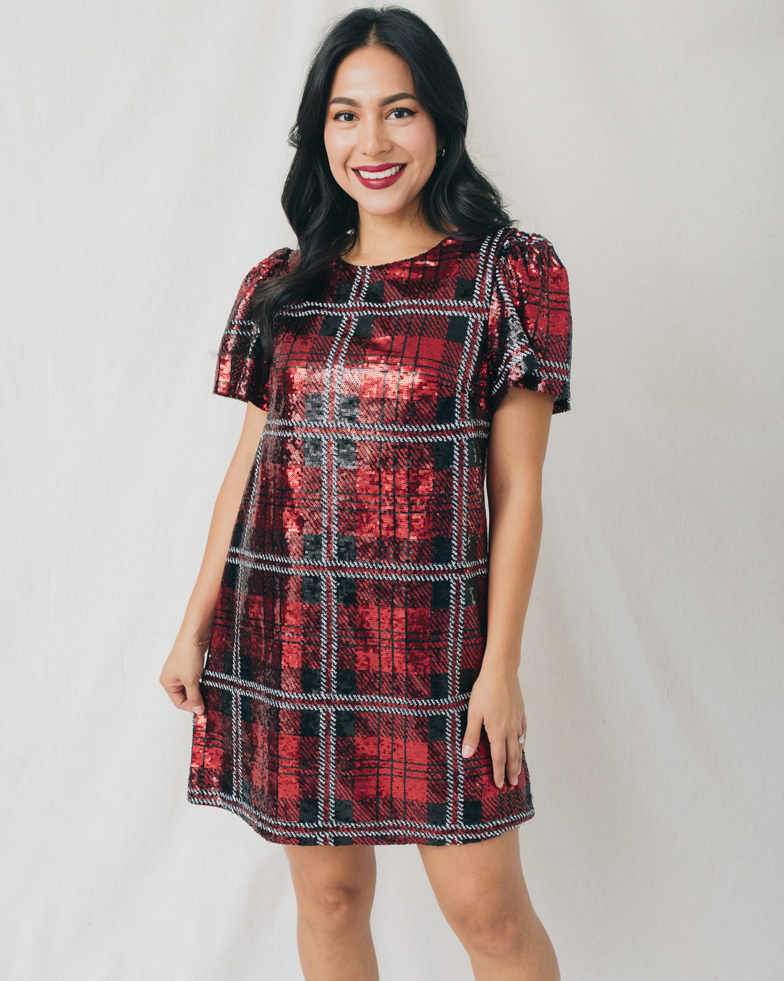 Holly Plaid 3/4 Sleeve Buttoned Crop Top