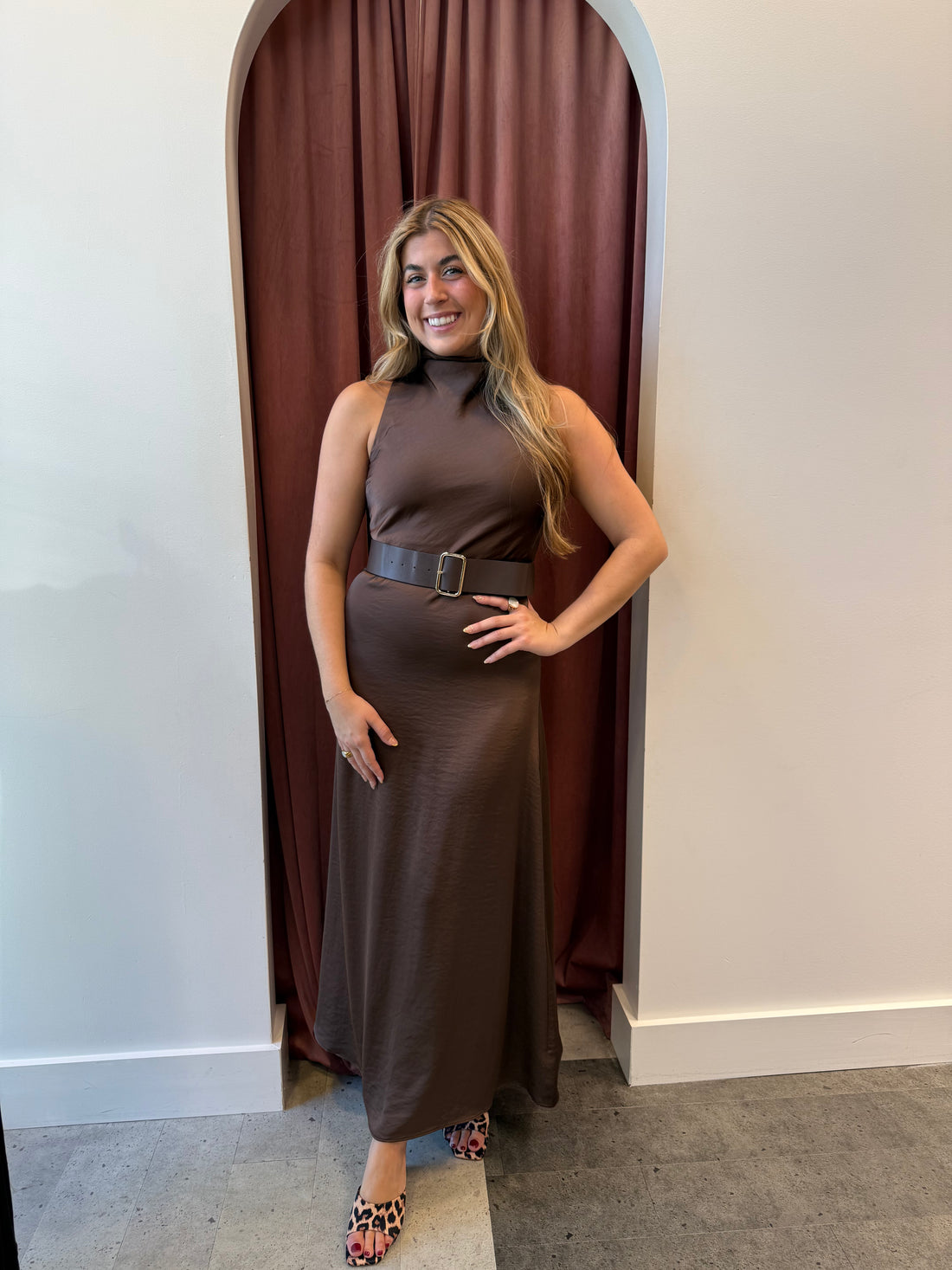 Dianne High Neck Belted Sleeveless Maxi Dress